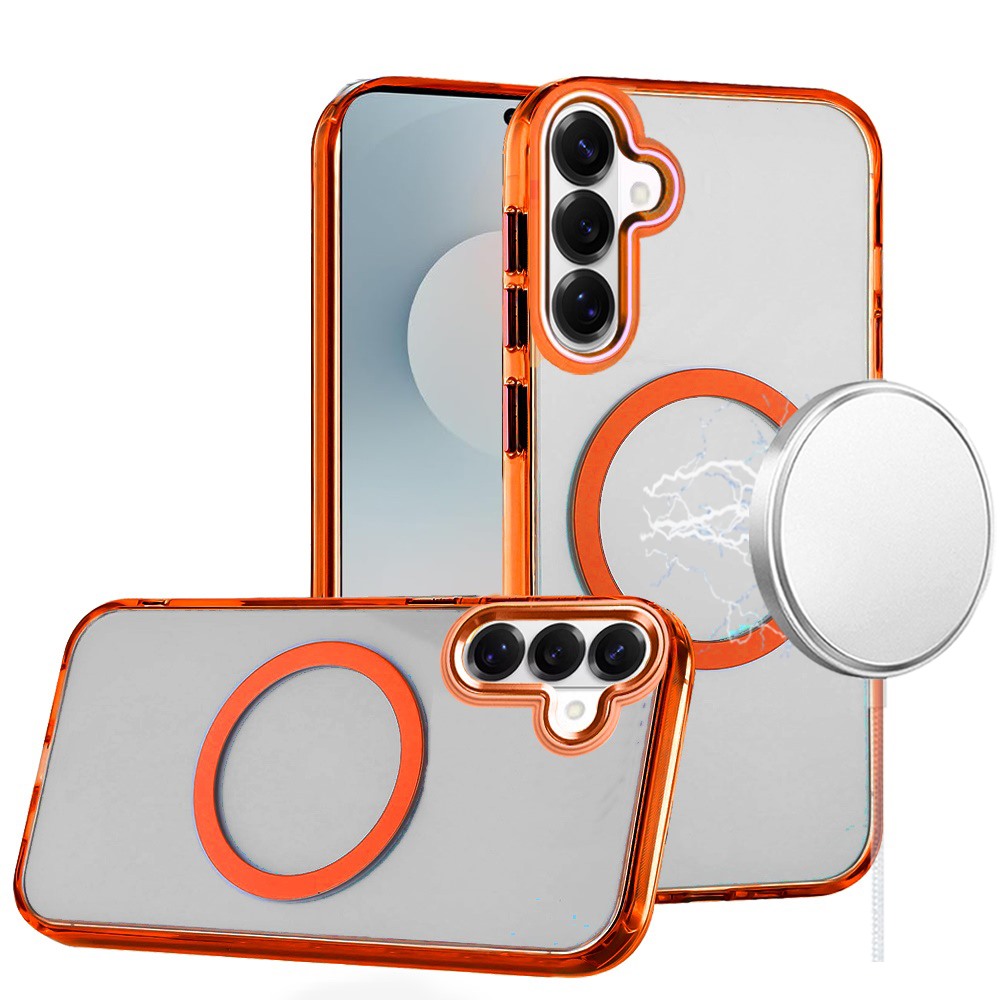 For Samsung s26 Magnetic Circle Ring Transparent Premium Acrylic with Metal Buttons & Camera Raised Lip - Cosmic Orange
