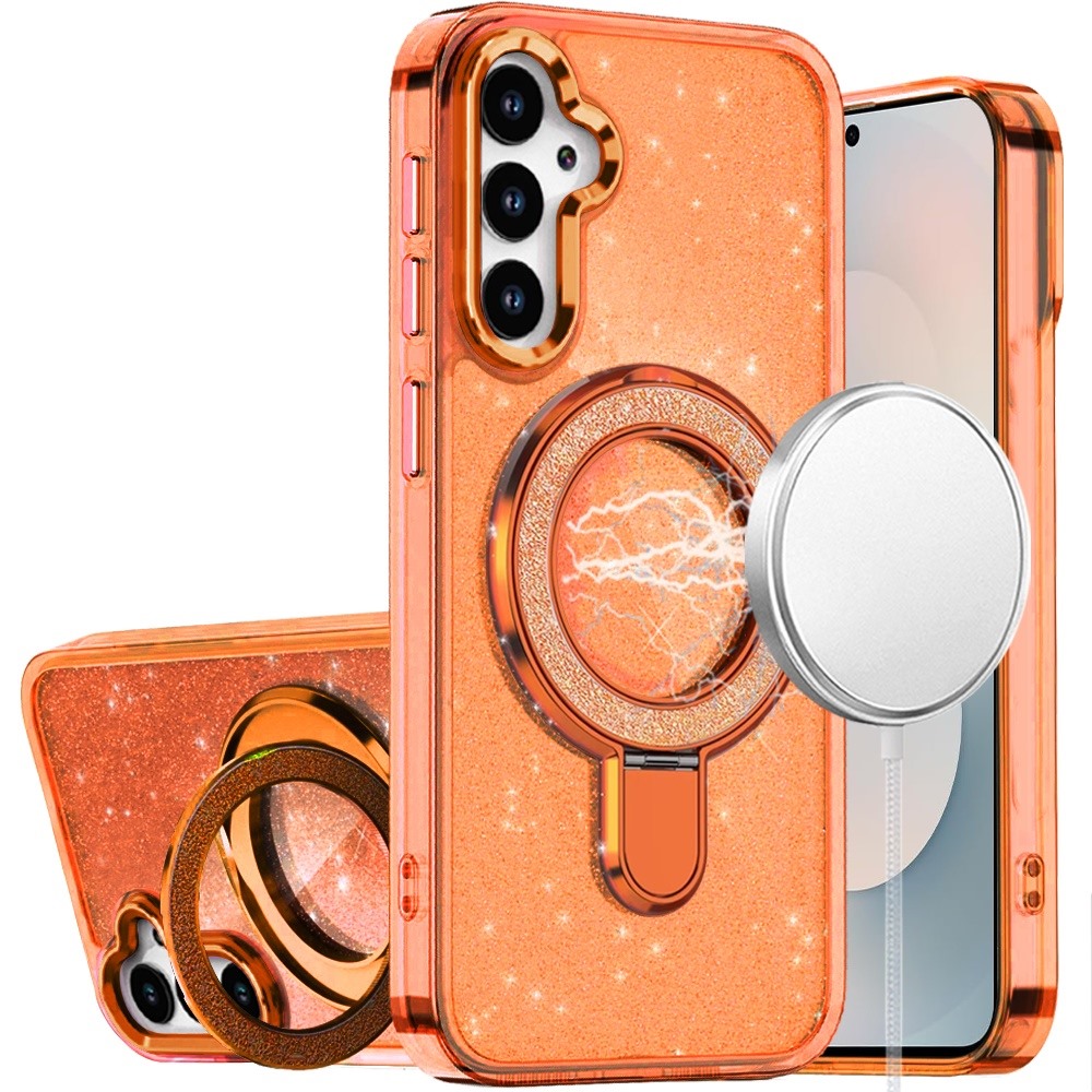 For Samsung s26 Transparent Glitter Rotaional Magnetic Ring Stand HQ Hybrid - Cosmic Orange