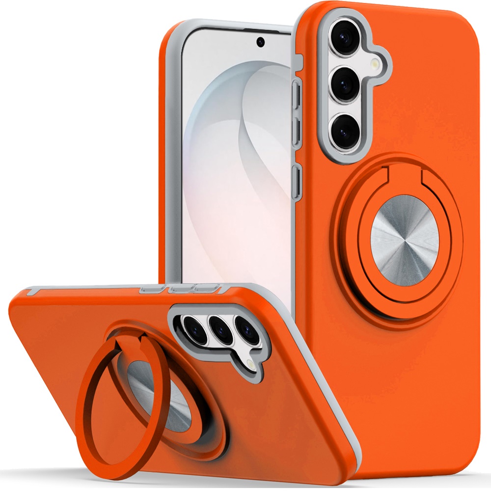 For Samsung s26 Metal CD Pattern Matte Finished Hybrid with Rotational Ring [Car Mount Friendly] Case - Cosmic Orange