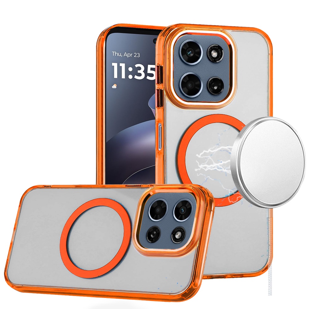 For Motorola Moto G 5G 2025 Magnetic Circle Ring Transparent Premium Acrylic with Metal Buttons & Camera Raised Lip - Cosmic Orange