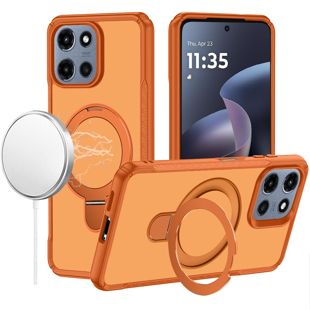 For Motorola Moto G 5G 2025 Matte Finish Simplified Magnetic Ring With Stand Hybrid Case - Cosmic Orange