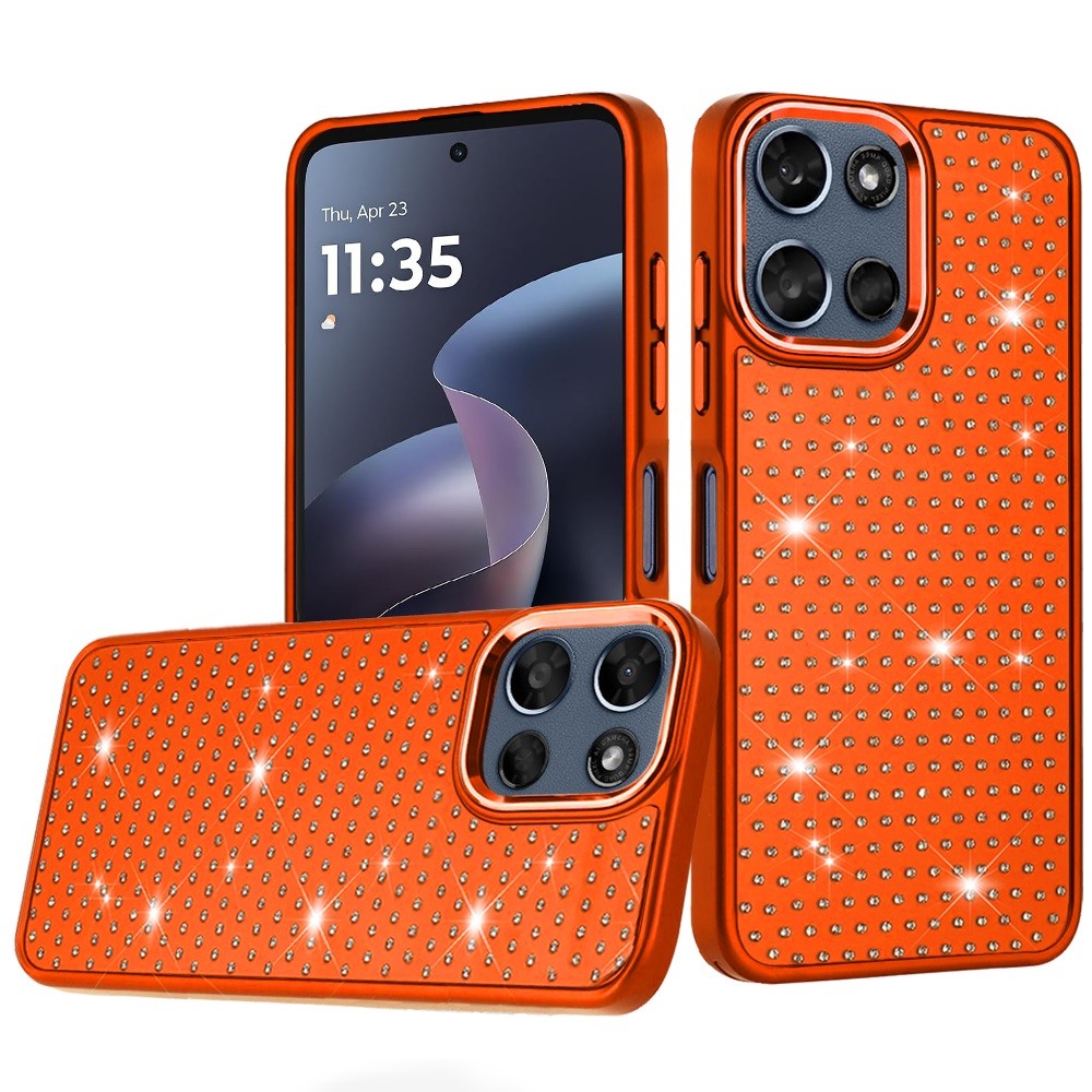 For Moto G 5G 2025/2026 / G PLAY 2026 Beautiful Diamond Metallic Design Metal Chrome Edged Hybrid - Cosmic Orange