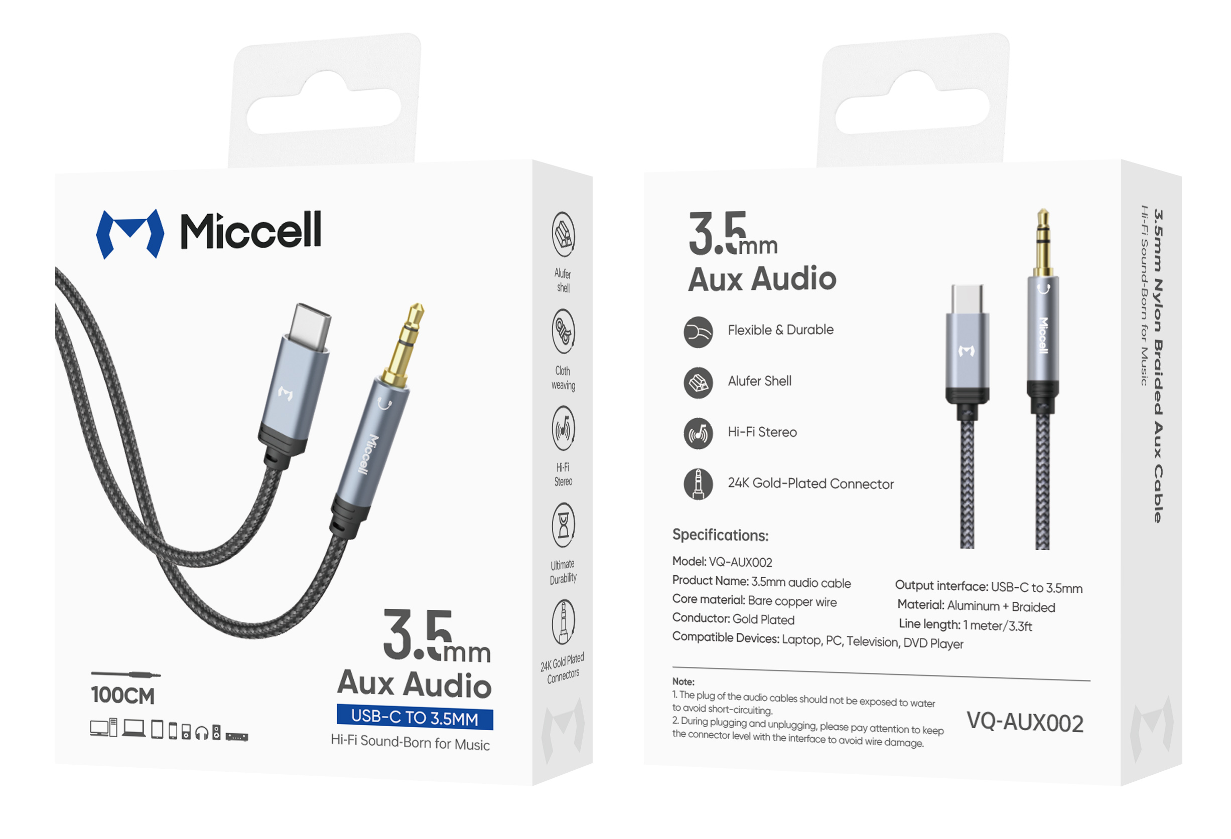 Miccell 3.3FT 1M 3.5mm Male to USB-C Hi-Fi Auxiliary Nylon Braided Cable - Gray