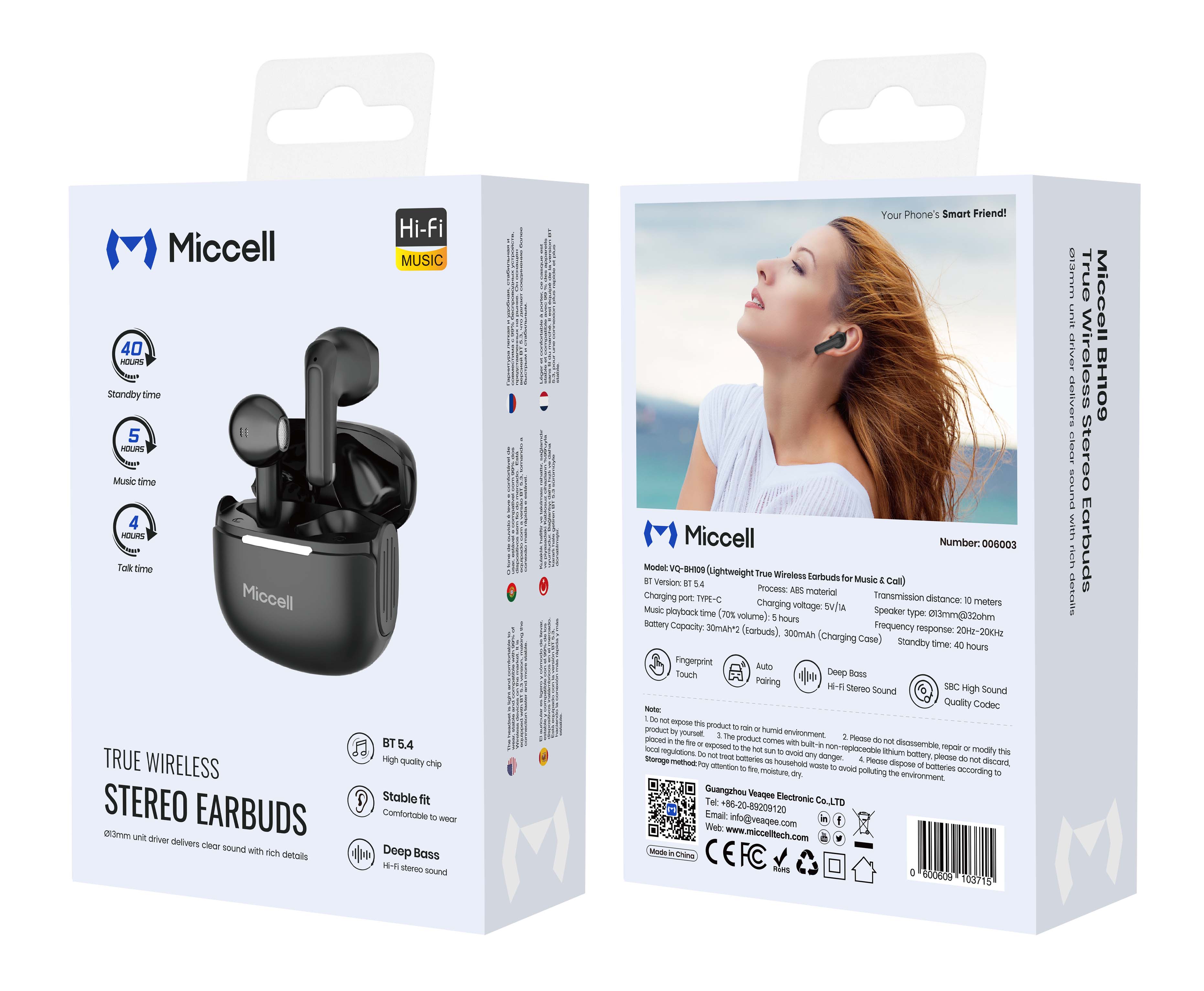 Micell BH109 True Wireless Stereo Earbuds with Charging Case - Black
