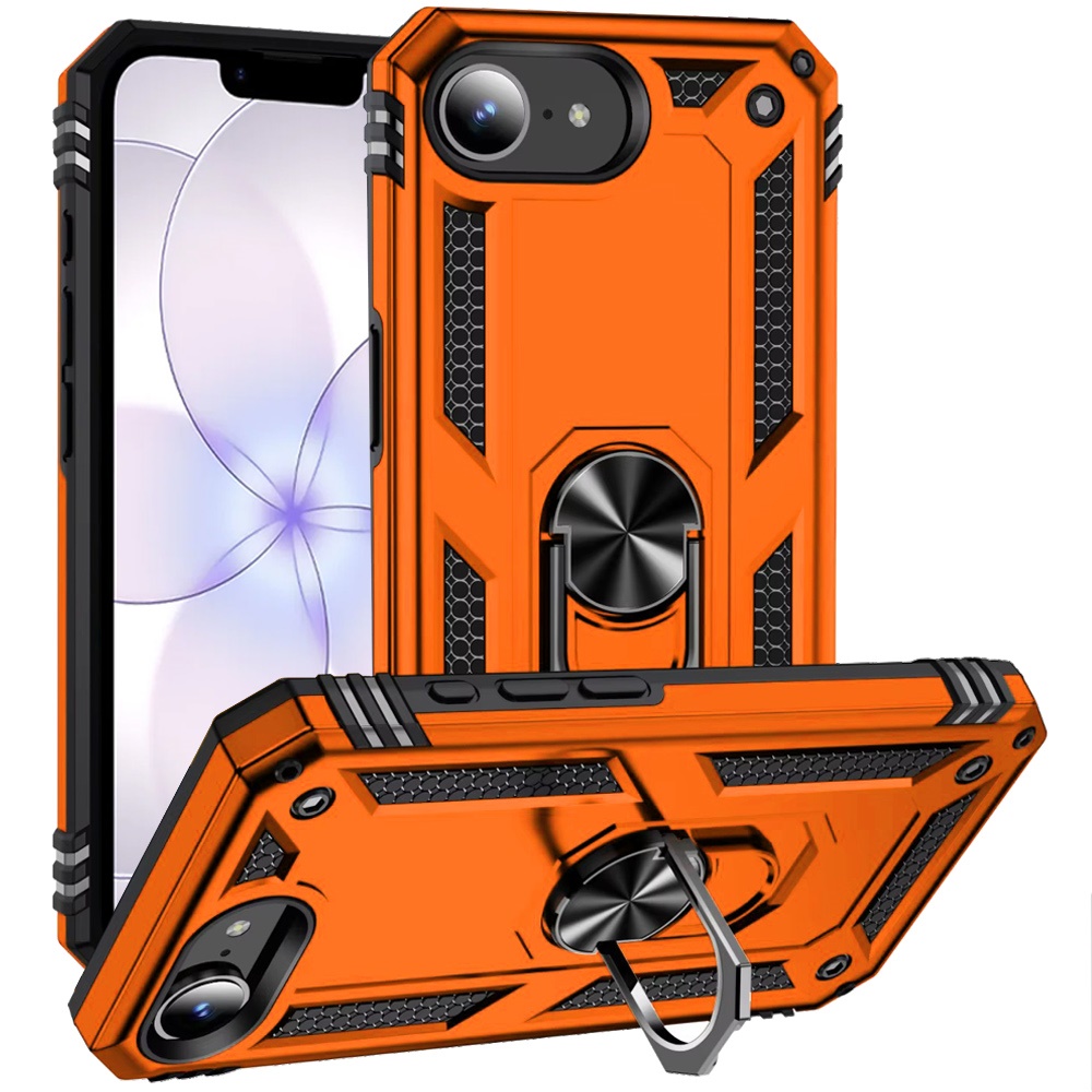 For iPhone 16E (E edition) / SE4 (2025) Ring Magnetic Kickstand Hybrid Case Cover - Cosmic Orange