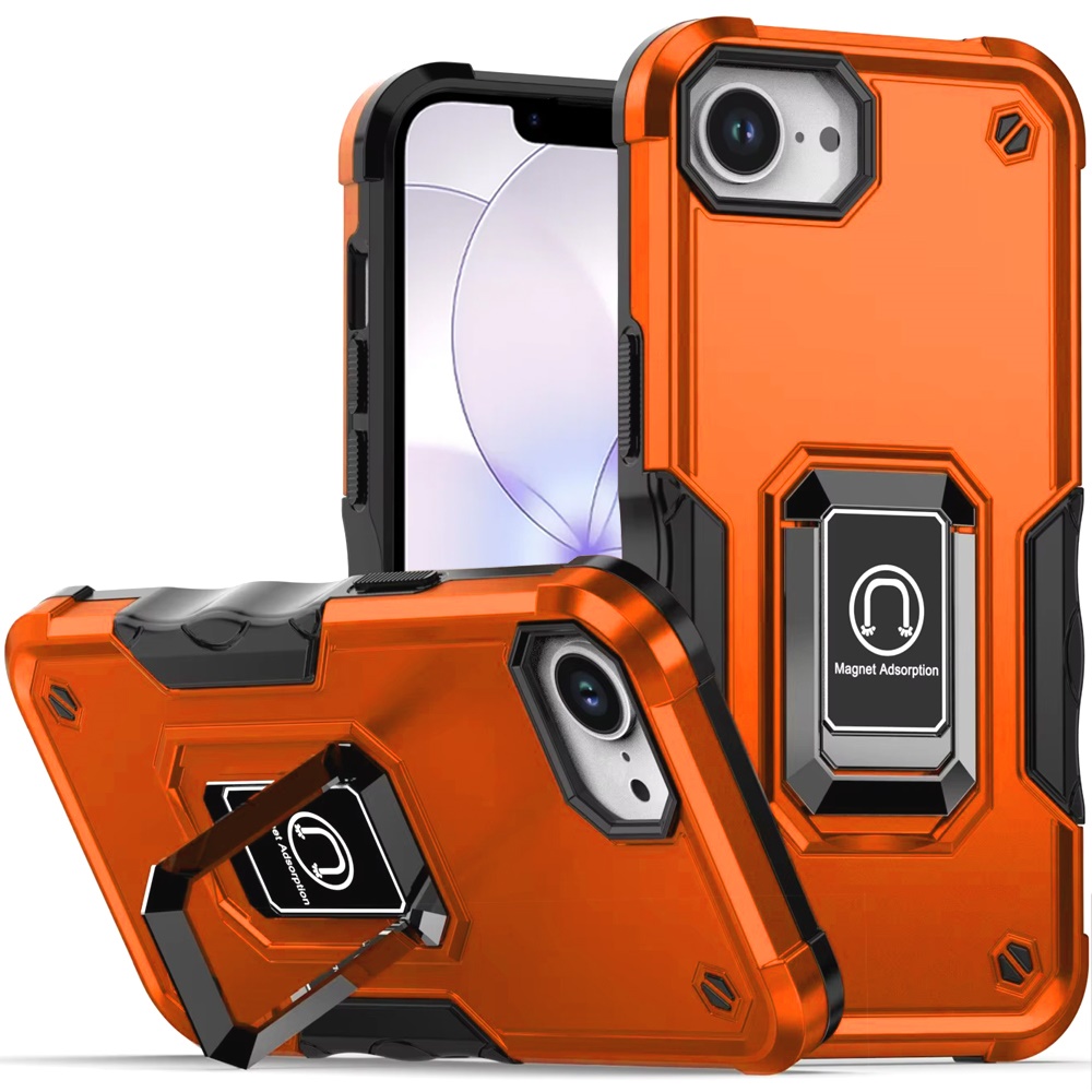 For iPhone 16E (E edition) / SE4 (2025) OPTIMUM Magnetic Ring Stand Hybrid Case Cover - Cosmic Orange