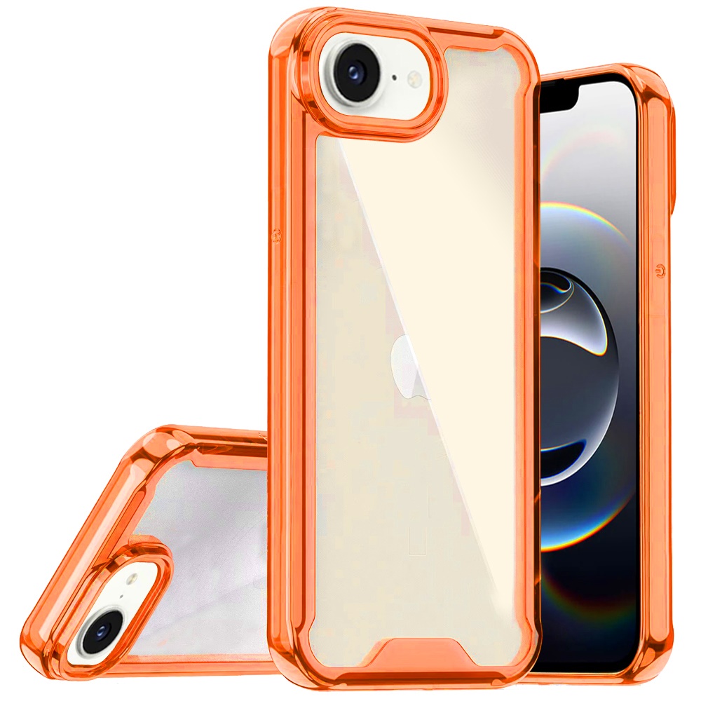 For iPhone 16E (E edition) / SE4 (2025) Colored Shockproof Transparent Hard PC TPU Hybrid Case Cover - Cosmic Orange