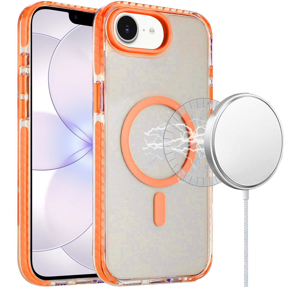 For iPhone 16E (E edition) / SE4 (2025) Transparent Matching Color Magnetic Ring Hybrid - Cosmic Orange