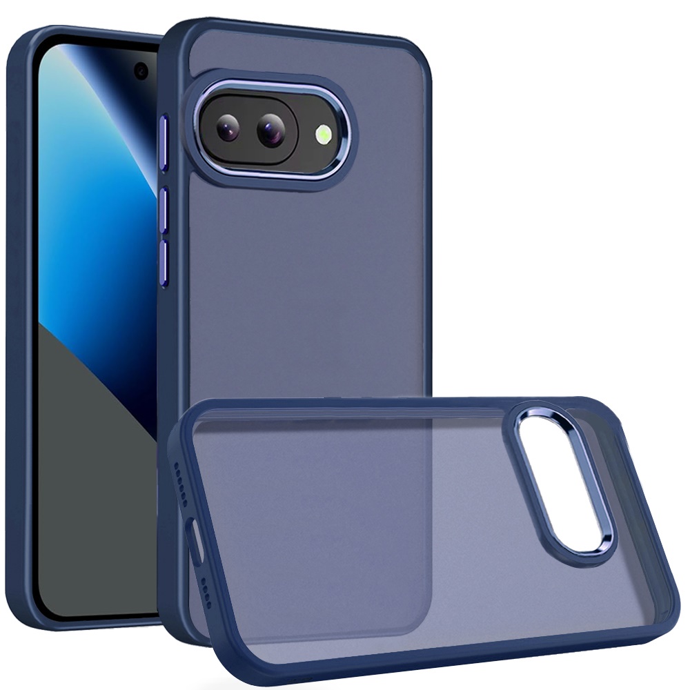 For Google Pixel 10a Polished Oil Thick Acrylic Metal Button Hybrid Case Cover - Dark Blue