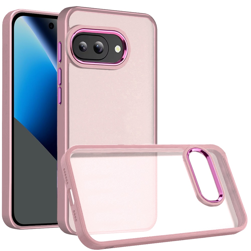 For Google Pixel 10a Polished Oil Thick Acrylic Metal Button Hybrid Case Cover - Light Pink