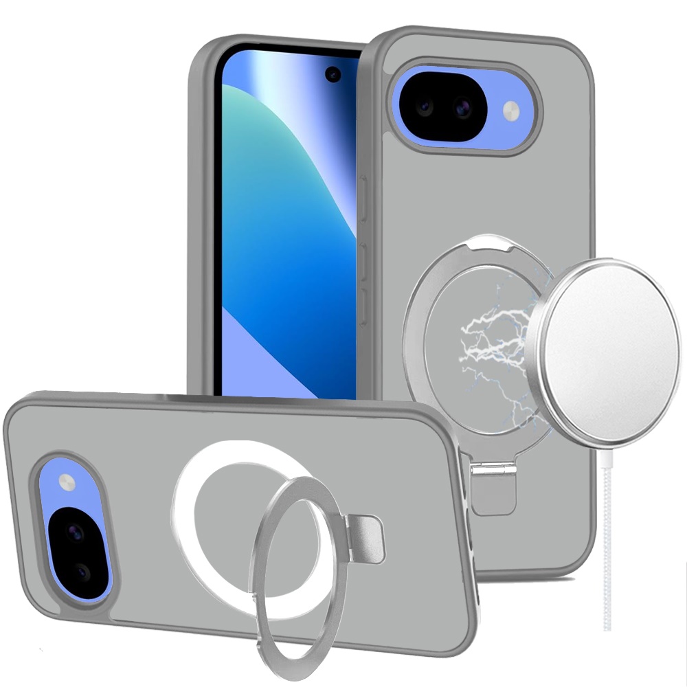 For Google Pixel 10a Magnetic Matching Ring Stand Full Rotation Matte Hybrid - Grey