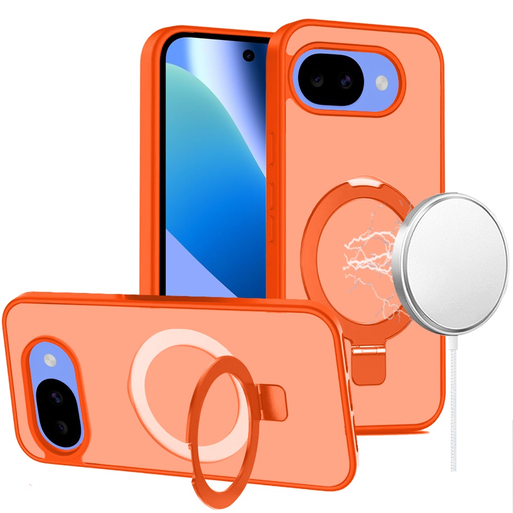 For Google Pixel 10a Magnetic Matching Ring Stand Full Rotation Matte Hybrid - Cosmic Orange