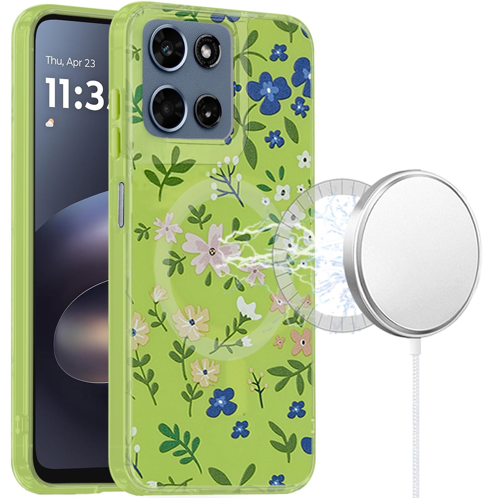 For Moto G 5G 2025/2026 / G PLAY 2026 Double layers IMD case with magsafe - Green Floral