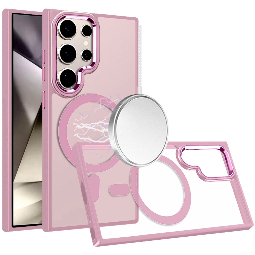 For Samsung Galaxy s24 UltraMagnetic Greatest Clear Acrylic Thick Metal Button Hybrid - Light Pink