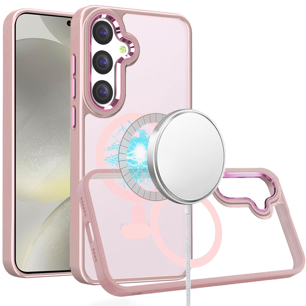 For Samsung Galaxy s24 Plus Magnetic Greatest Clear Acrylic Thick Metal Button Hybrid - Light Pink