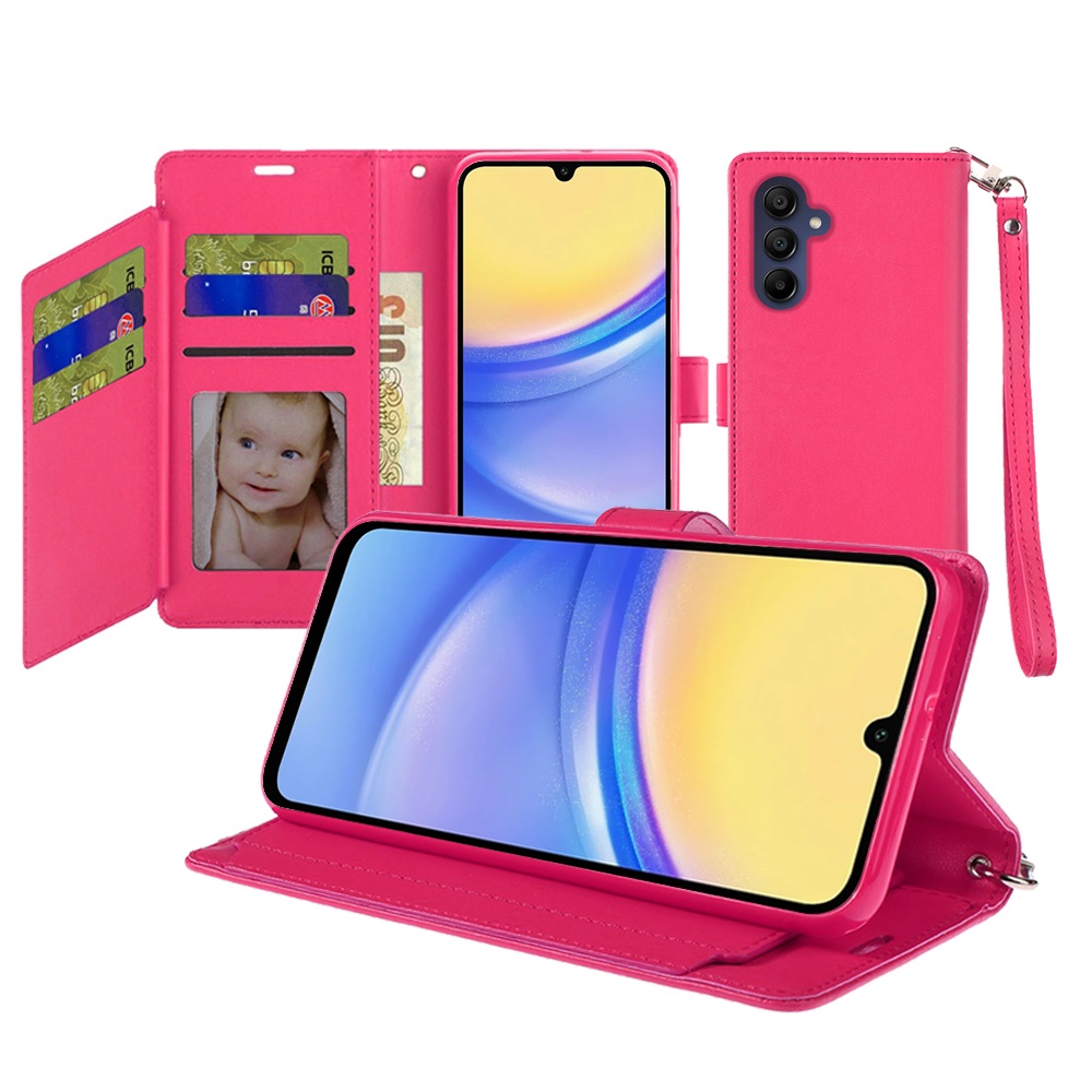 For Samsung A15 5G Wallet ID Card Holder Case Cover - Hot Pink