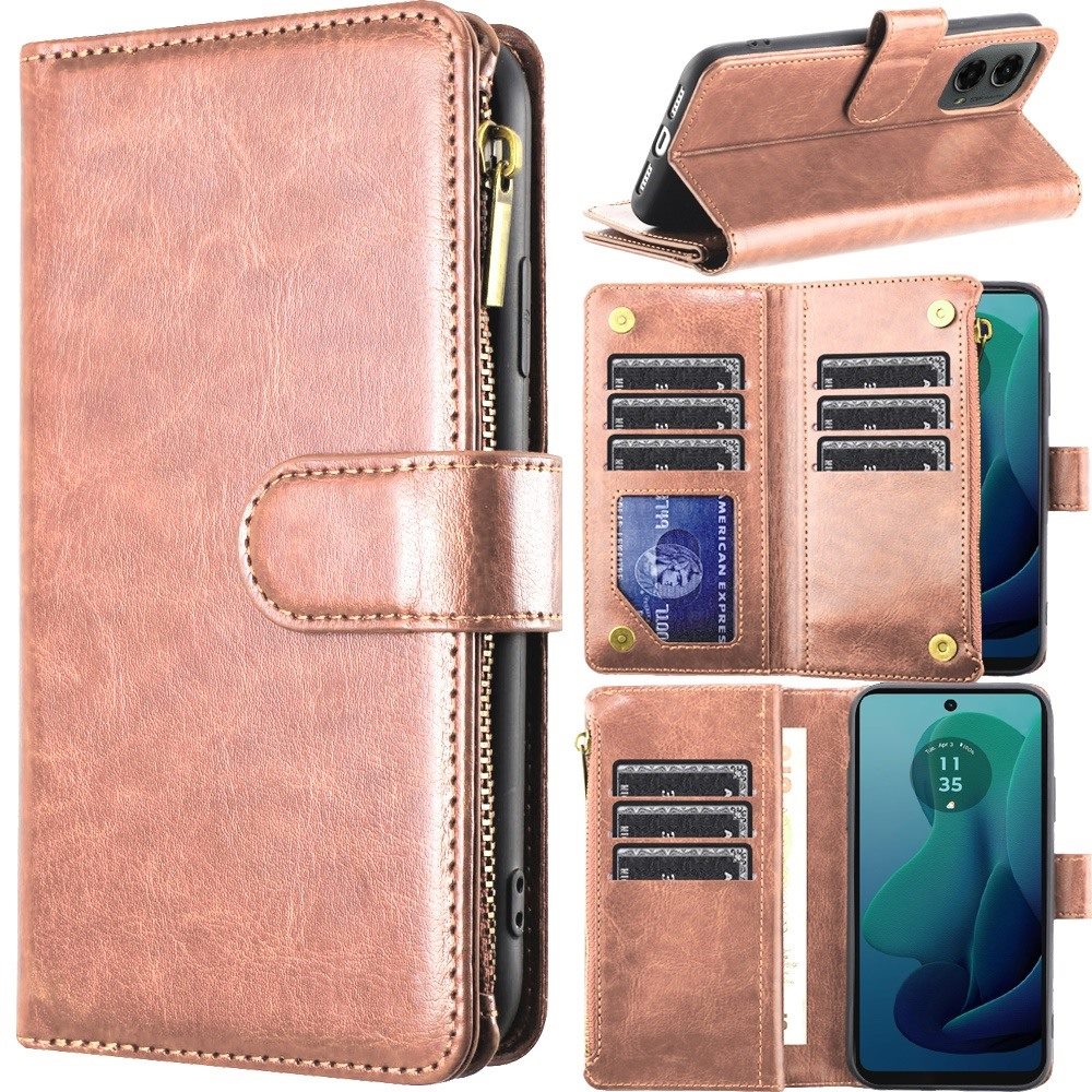 For Motorola Moto G 5G (2024) Luxury Wallet Card ID Zipper Money Holder - Rose Gold