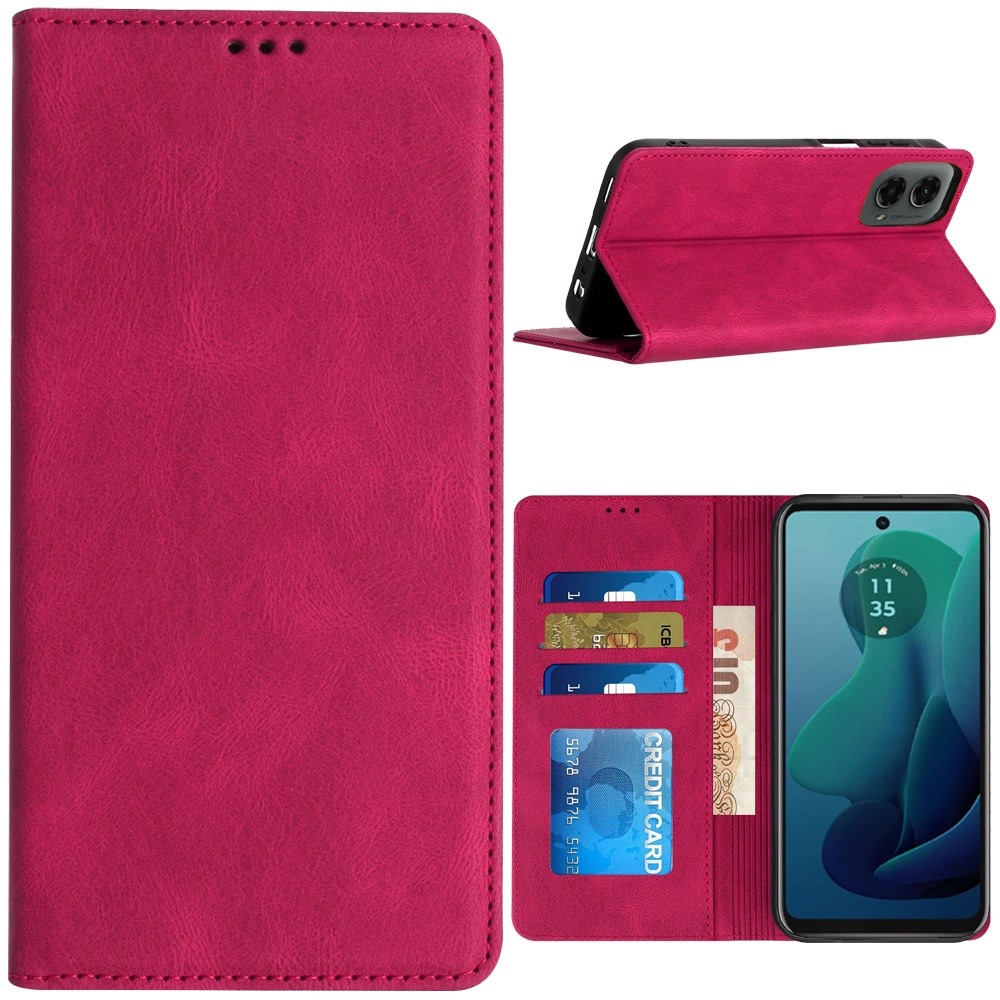 For Motorola Moto G 5G (2024) Wallet PU Vegan Leather ID Card Money Holder with Magnetic Closure - Hot Pink